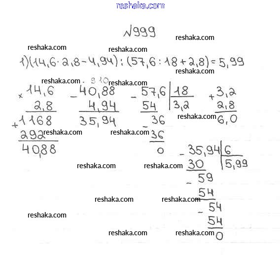 Представляем вам сборники по Математике, с готовыми ответами к Учебнику Мерзляк школьной программы для учеников пятый класса. Это не просто гдз с ответом, а с подсказками, как верно решить §35. Деление десятичных дробей Глава 5. Десятичные дроби 999. Проверяй домашку с умом и получай высший балл!