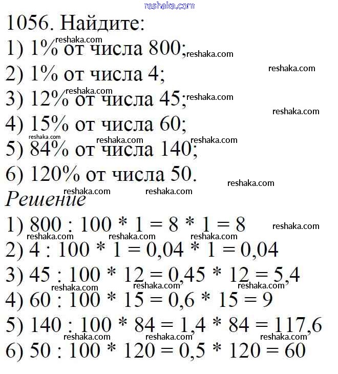 Представляем вам сборники по Математике, с готовыми ответами к Учебнику Мерзляк школьной программы для учеников пятый класса. Это не просто гдз с ответом, а с подсказками, как верно решить §37. Проценты. Нахождение процентов от числа Глава 5. Десятичные дроби 1056. Проверяй домашку с умом и получай высший балл!