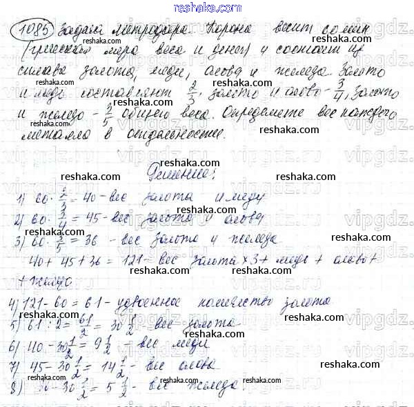 Представляем вам сборники по Математике, с готовыми ответами к Учебнику Никольский школьной программы для учеников пятый класса. Это не просто гдз с ответом, а с подсказками, как верно решить Упражнения 1085. Проверяй домашку с умом и получай высший балл!