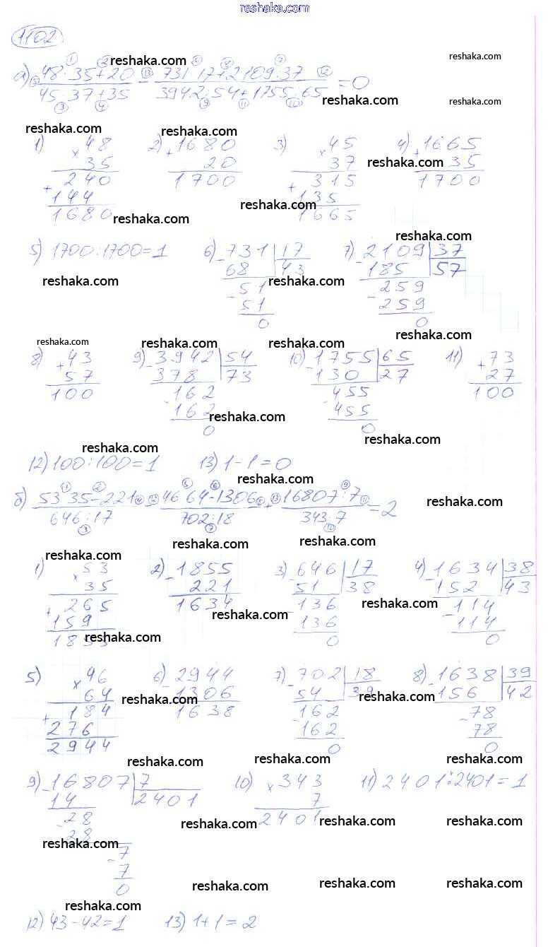Решака - онлайн ответы Математика Никольский, Потапов за 5 класс Учебник ФГОС 2016 - 1102