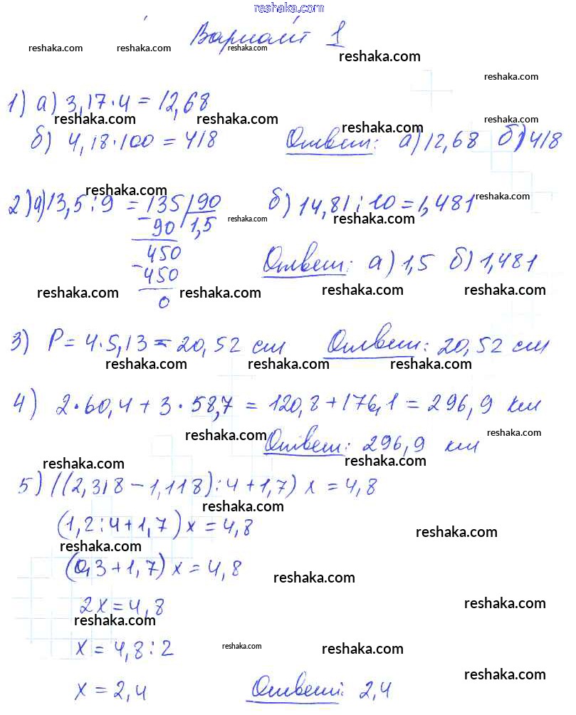 Решака - онлайн ответы Математика Попов за 5 класс Дидактические материалы ФГОС 2017 - вариант №1