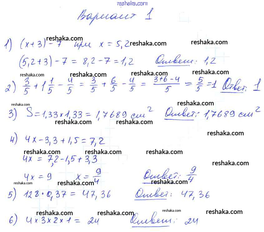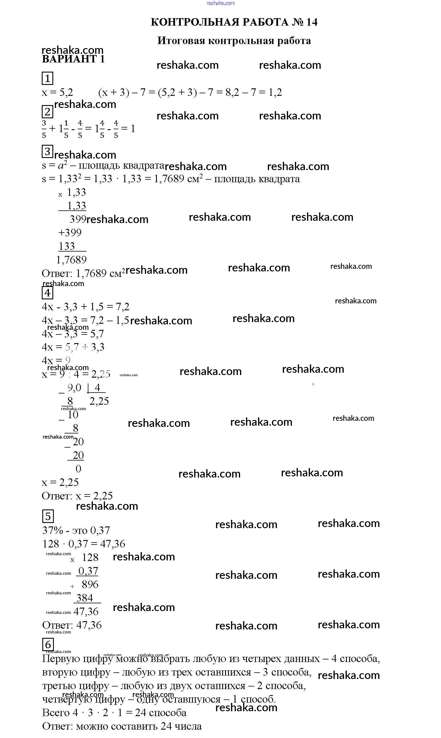 Решака - онлайн ответы Математика Попов за 5 класс Дидактические материалы ФГОС 2017 - вариант №1