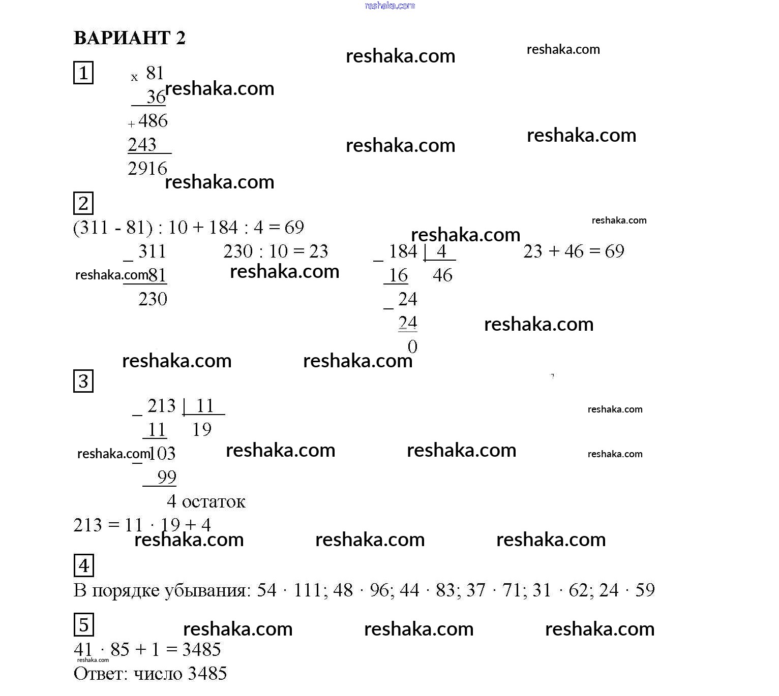 Решака - онлайн ответы Математика Попов за 5 класс Дидактические материалы ФГОС 2017 - вариант №2