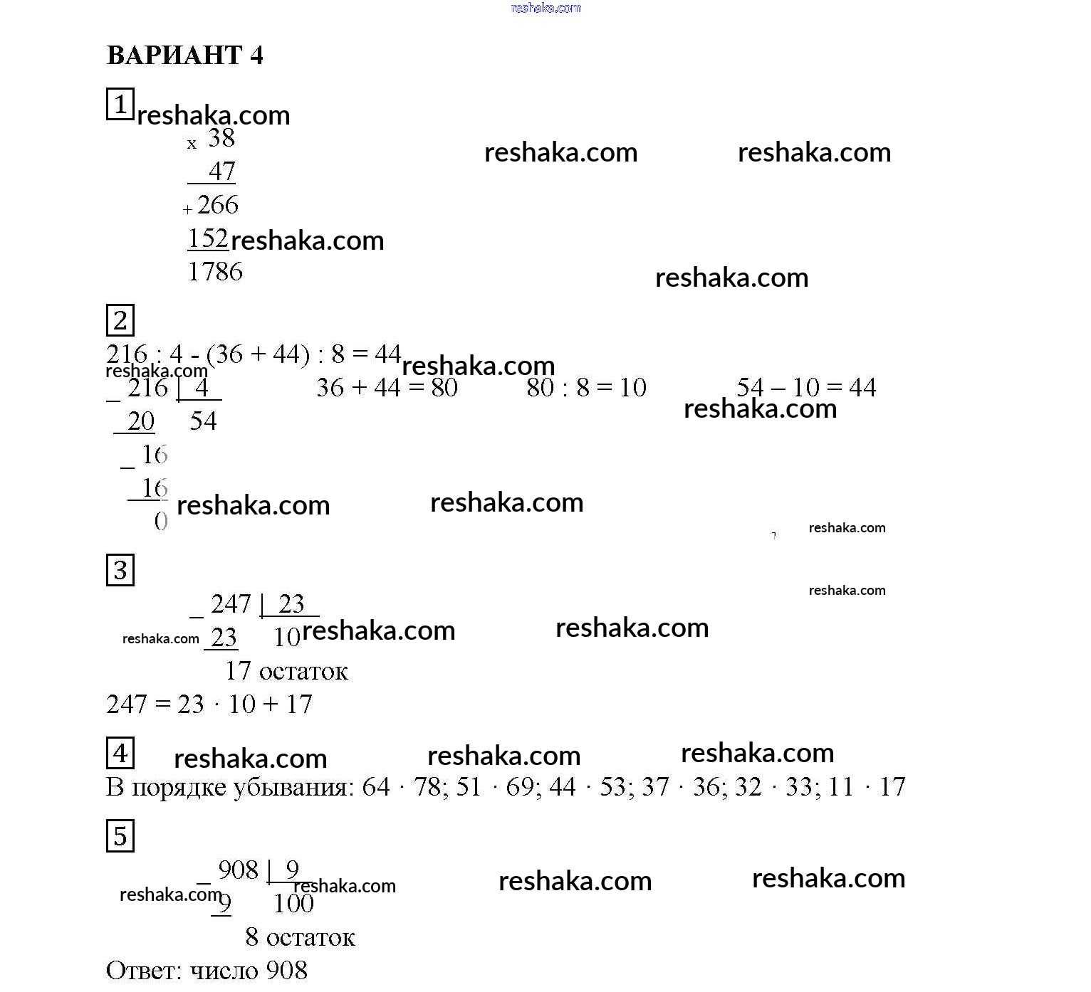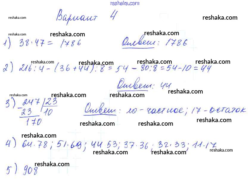 Решака - онлайн ответы Математика Попов за 5 класс Дидактические материалы ФГОС 2017 - вариант №4