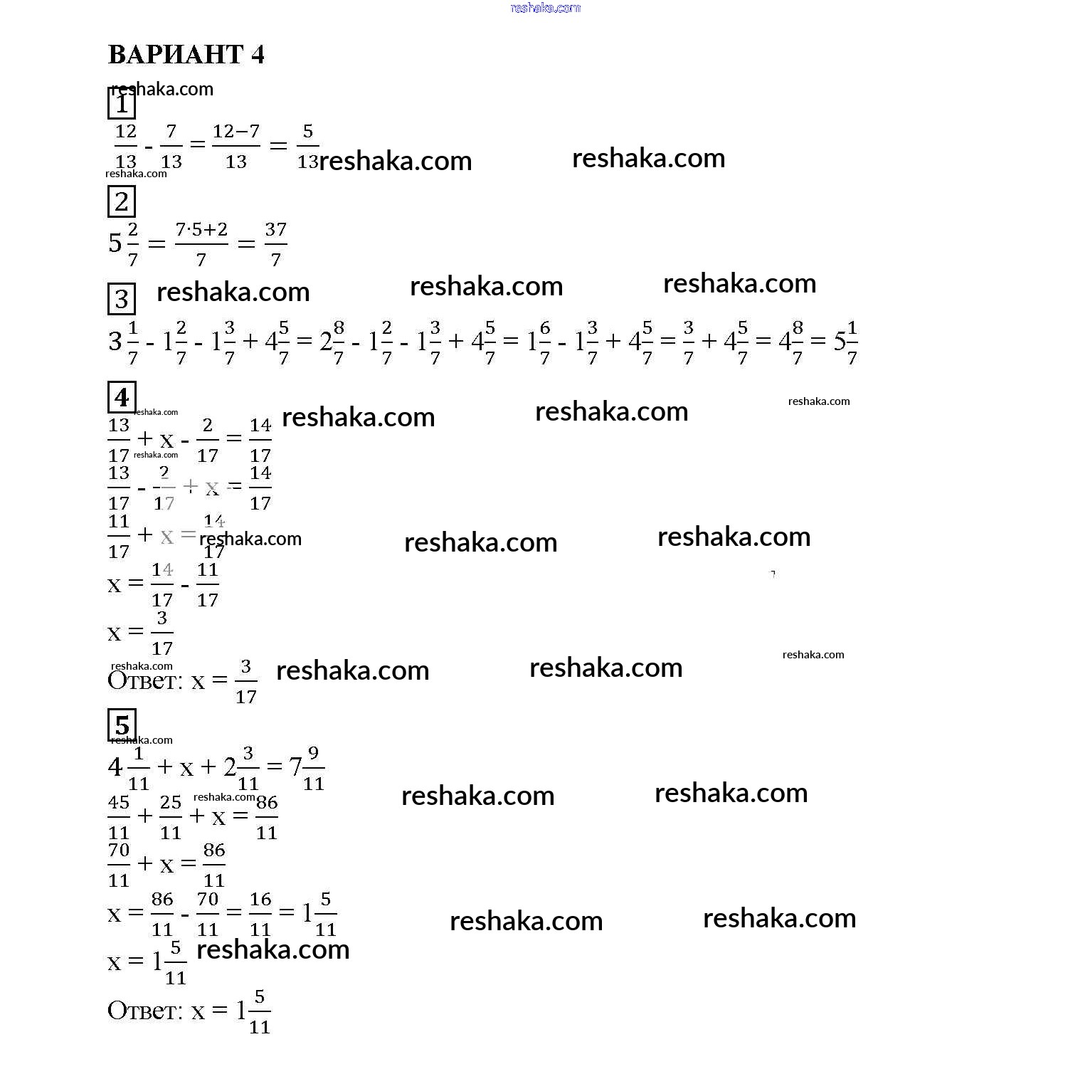 Решака - онлайн ответы Математика Попов за 5 класс Дидактические материалы ФГОС 2017 - вариант №4