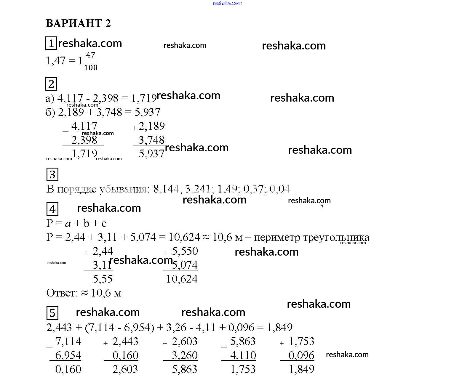 Решака - онлайн ответы Математика Попов за 5 класс Дидактические материалы ФГОС 2017 - вариант №2