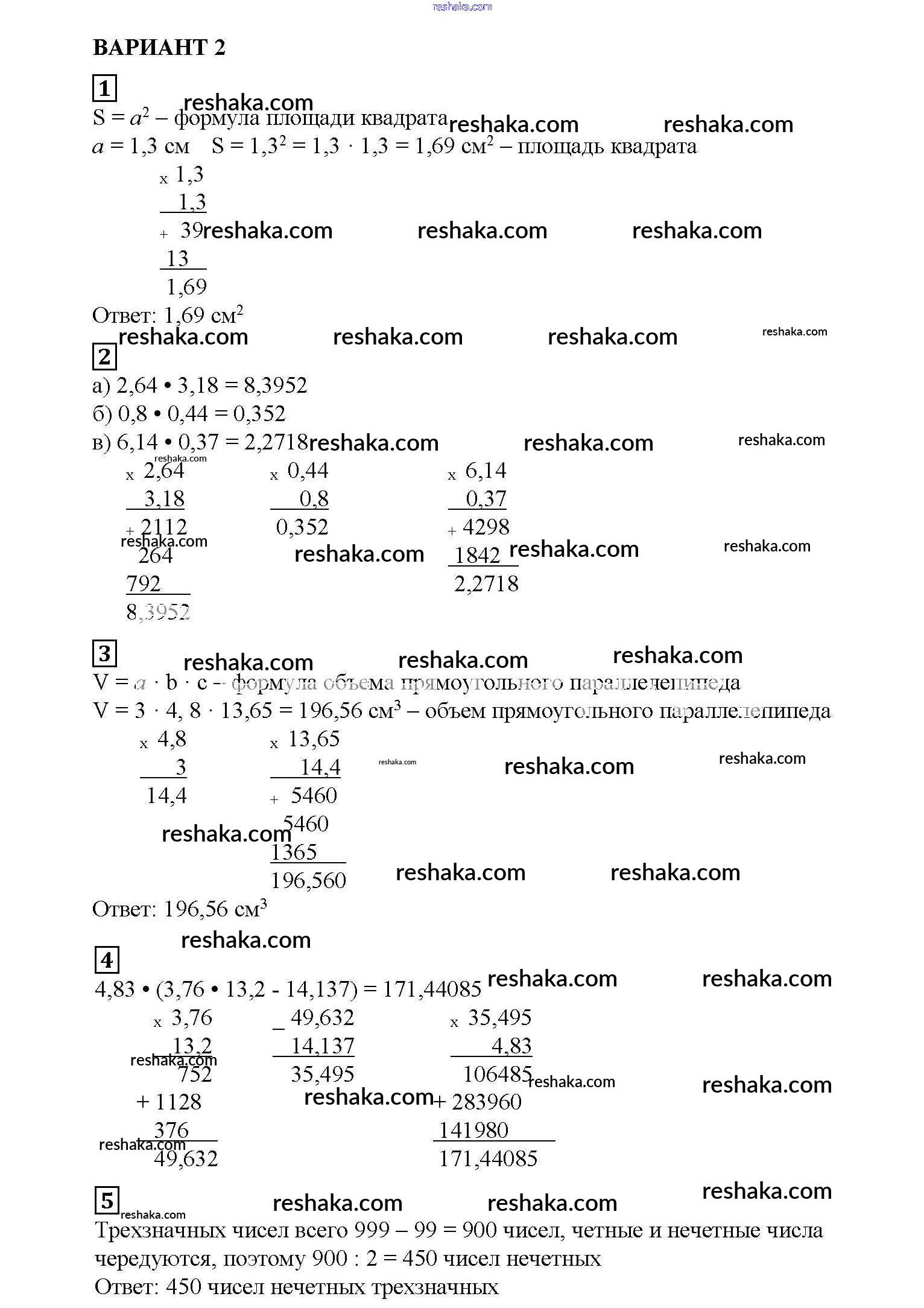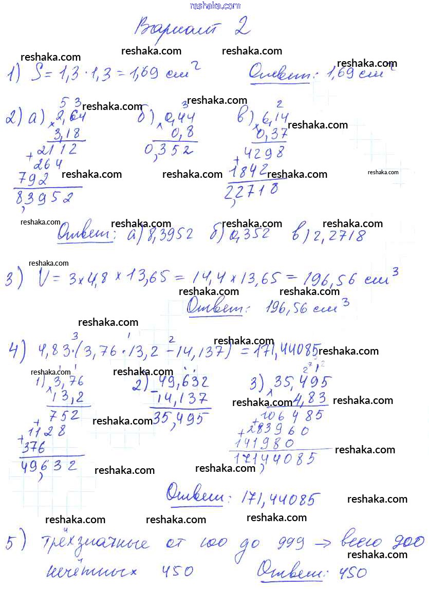 Решака - онлайн ответы Математика Попов за 5 класс Дидактические материалы ФГОС 2017 - вариант №2