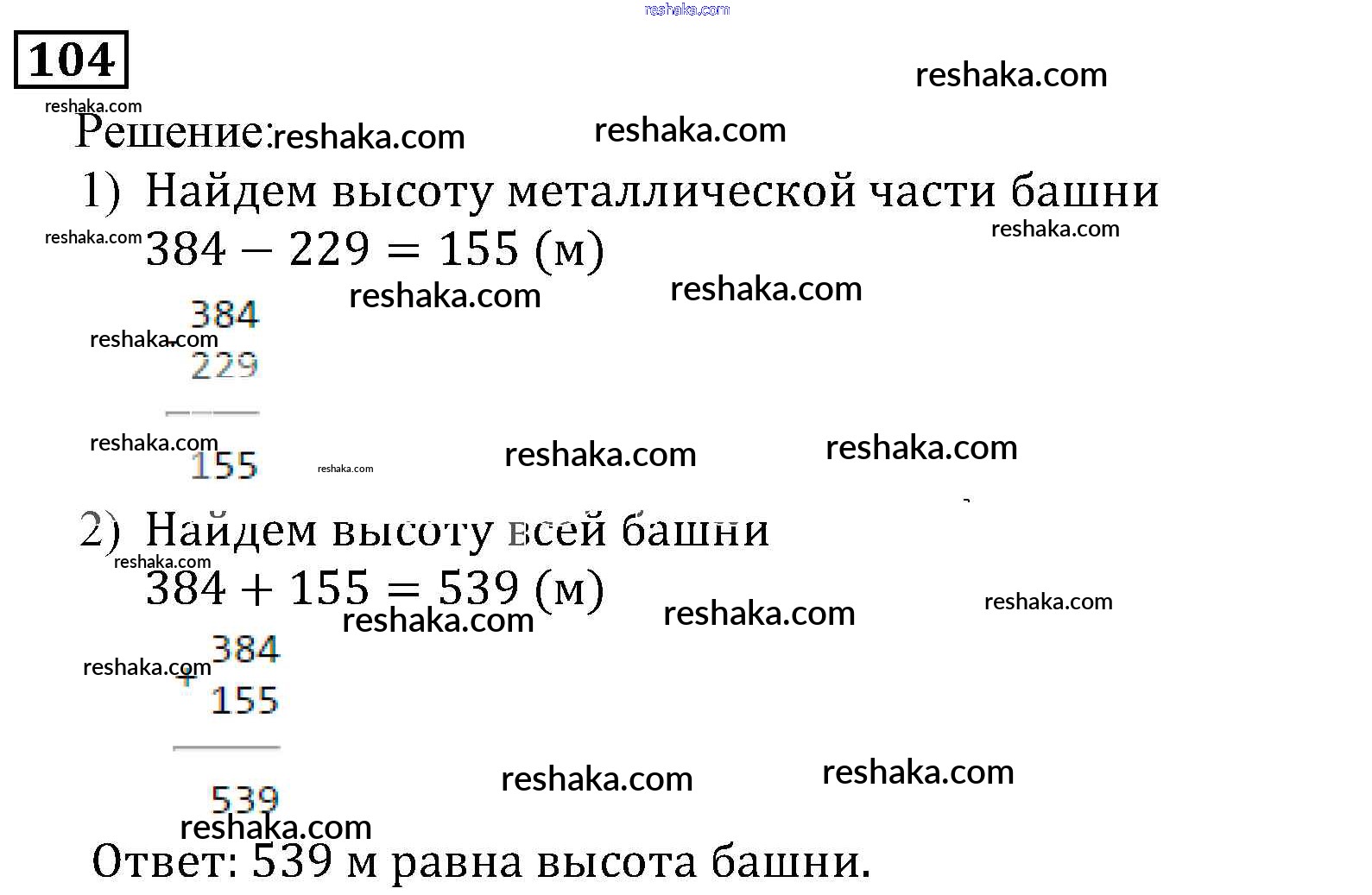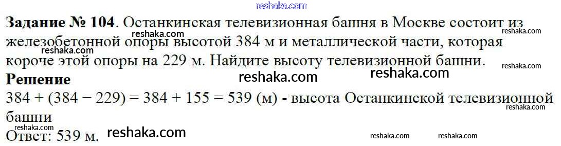 Решака - онлайн ответы Математика Виленкин, Жохов за 5 класс Учебник ФГОС 2013 - 104