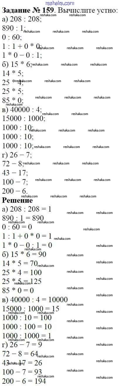 Решака - онлайн ответы Математика Виленкин, Жохов за 5 класс Учебник ФГОС 2013 - 159