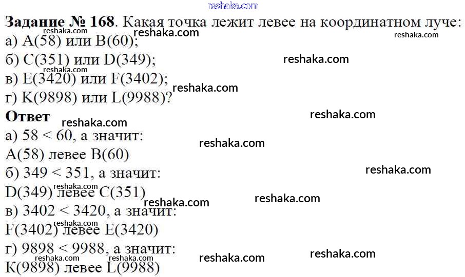 Решака - онлайн ответы Математика Виленкин, Жохов за 5 класс Учебник ФГОС 2013 - 168