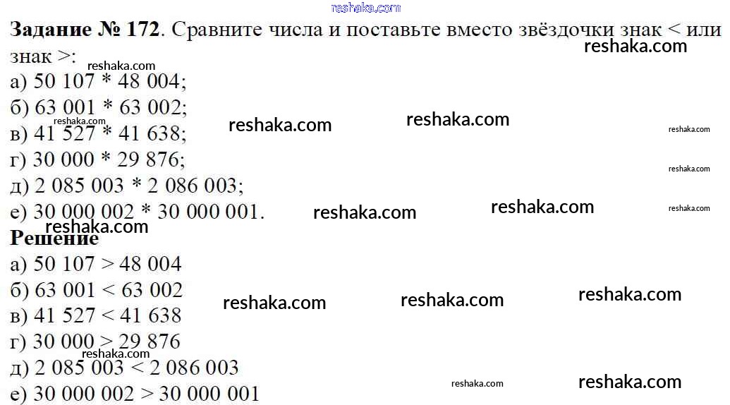 Решака - онлайн ответы Математика Виленкин, Жохов за 5 класс Учебник ФГОС 2013 - 172