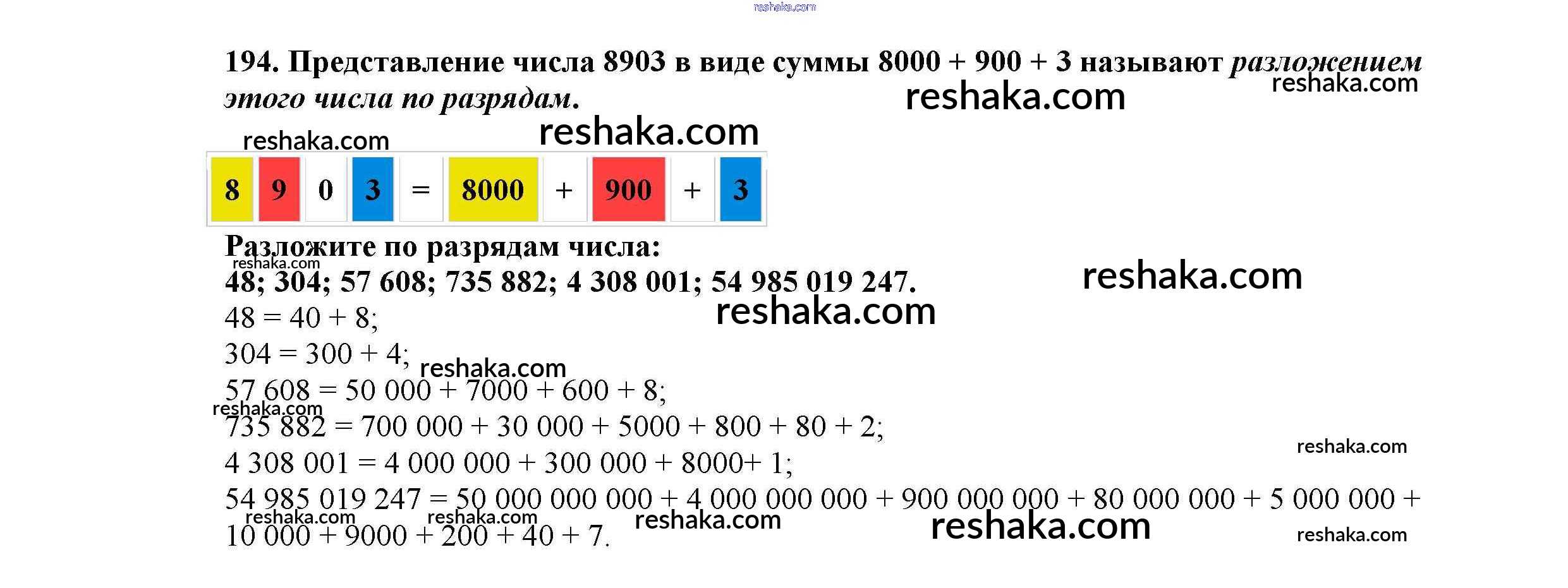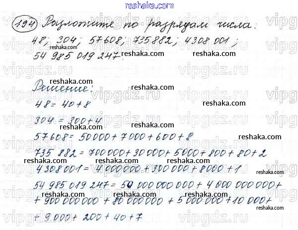 Решака - онлайн ответы Математика Виленкин, Жохов за 5 класс Учебник ФГОС 2013 - 194