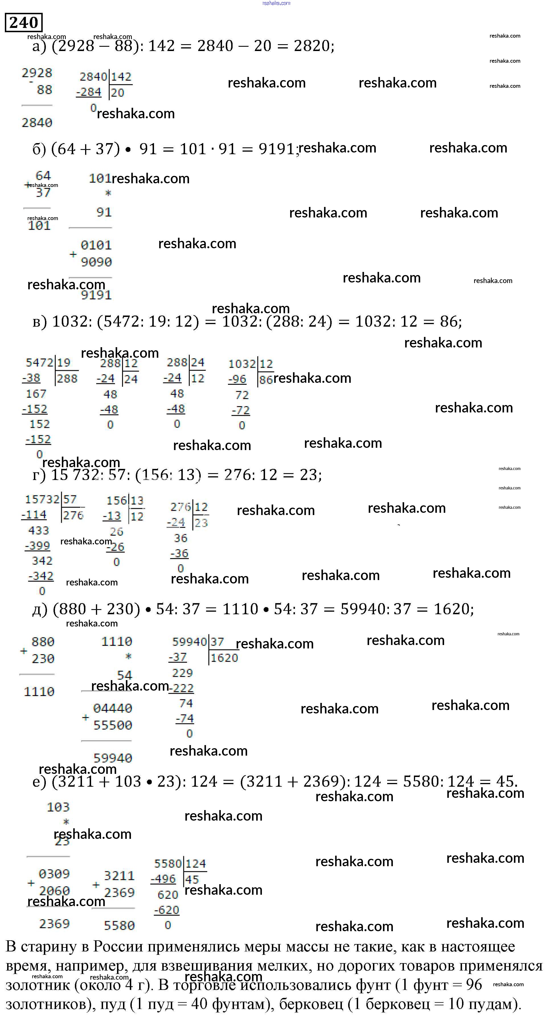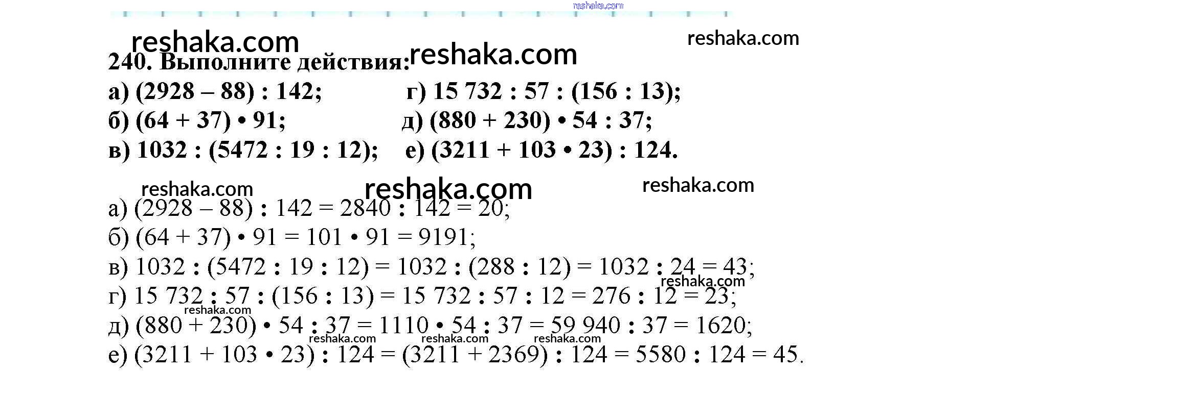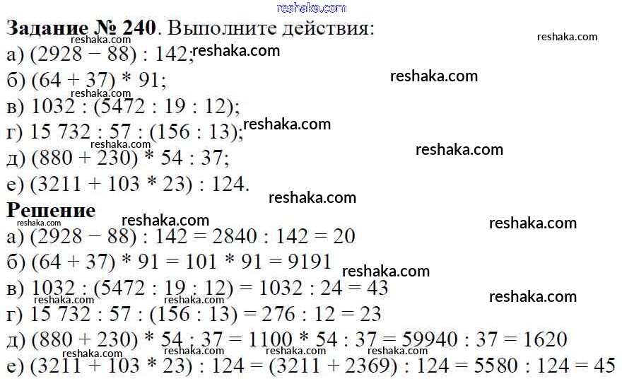 Решака - онлайн ответы Математика Виленкин, Жохов за 5 класс Учебник ФГОС 2013 - 240