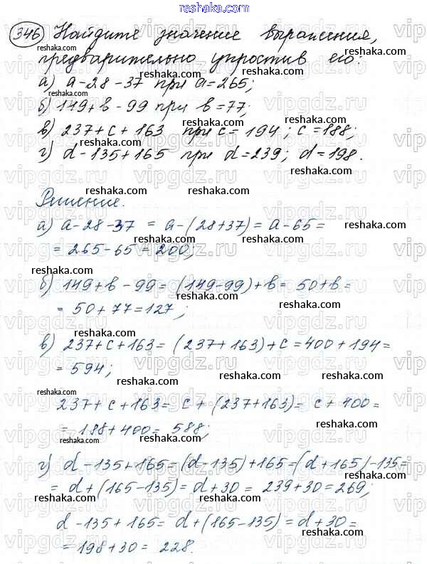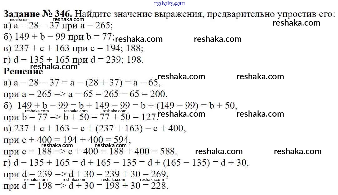 Решака - онлайн ответы Математика Виленкин, Жохов за 5 класс Учебник ФГОС 2013 - 346