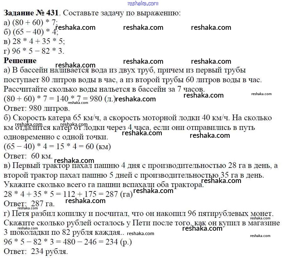 Решака - онлайн ответы Математика Виленкин, Жохов за 5 класс Учебник ФГОС 2013 - 431