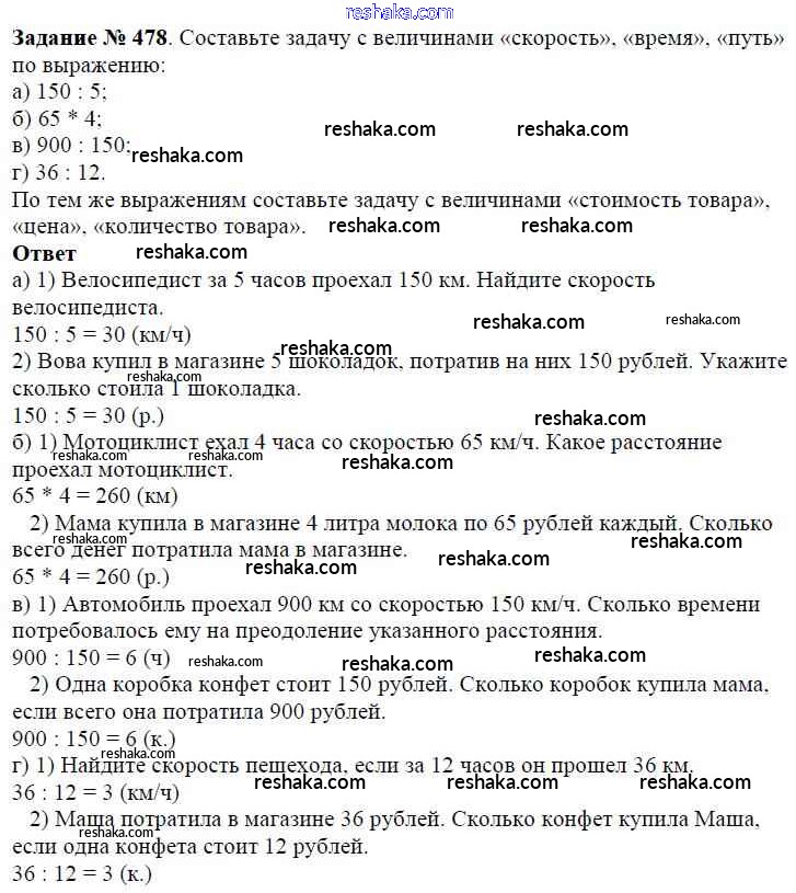 Решака - онлайн ответы Математика Виленкин, Жохов за 5 класс Учебник ФГОС 2013 - 478