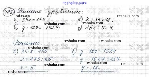 Решака - онлайн ответы Математика Виленкин, Жохов за 5 класс Учебник ФГОС 2013 - 482