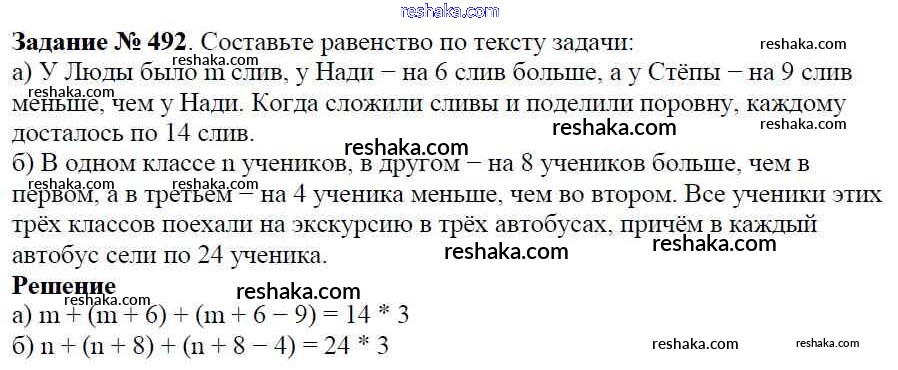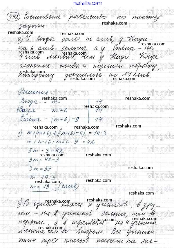 Решака - онлайн ответы Математика Виленкин, Жохов за 5 класс Учебник ФГОС 2013 - 492