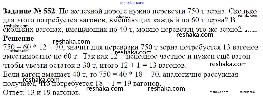 Решака - онлайн ответы Математика Виленкин, Жохов за 5 класс Учебник ФГОС 2013 - 552