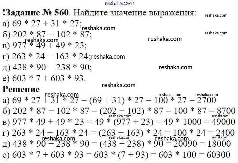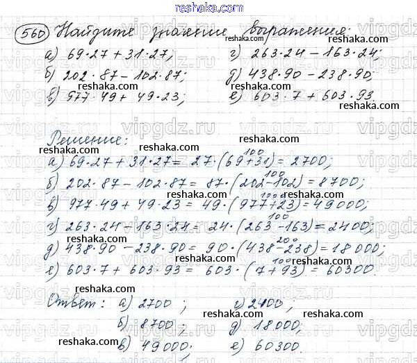 Решака - онлайн ответы Математика Виленкин, Жохов за 5 класс Учебник ФГОС 2013 - 560