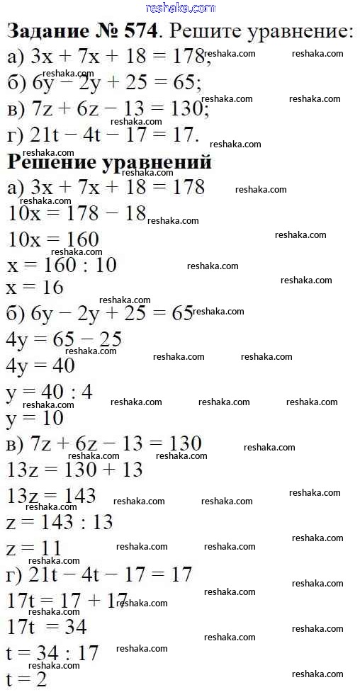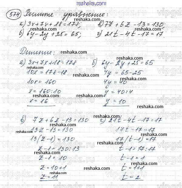 Решака - онлайн ответы Математика Виленкин, Жохов за 5 класс Учебник ФГОС 2013 - 574