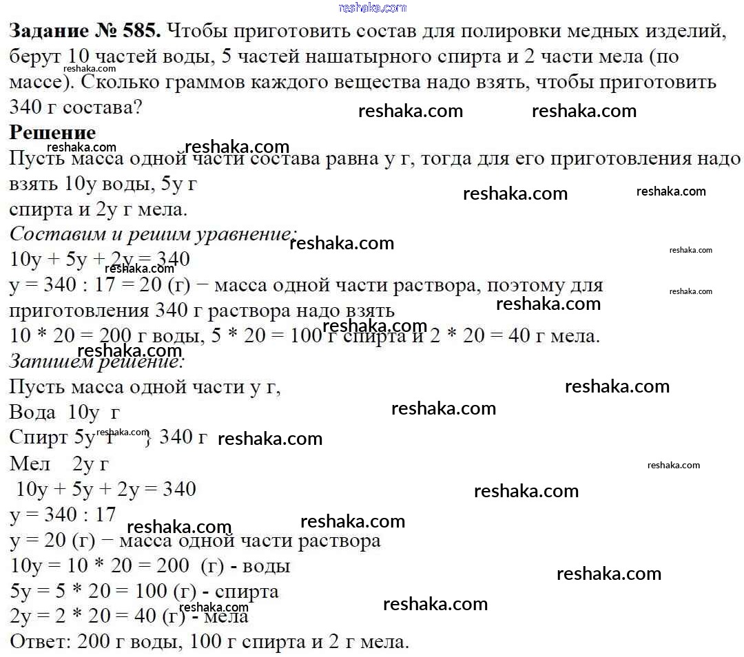 Решака - онлайн ответы Математика Виленкин, Жохов за 5 класс Учебник ФГОС 2013 - 585