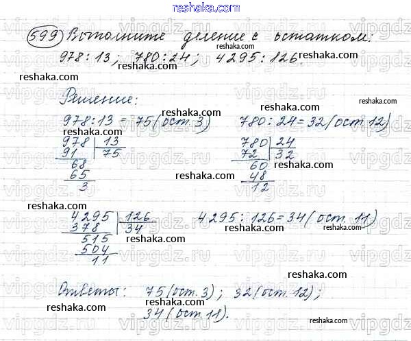 Решака - онлайн ответы Математика Виленкин, Жохов за 5 класс Учебник ФГОС 2013 - 599