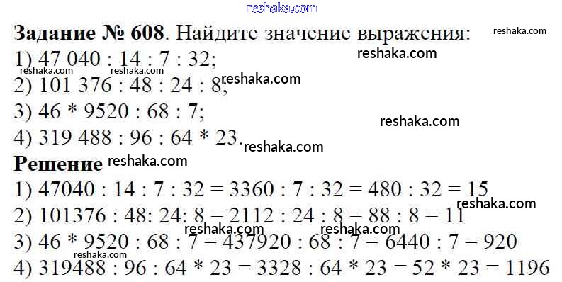 Решака - онлайн ответы Математика Виленкин, Жохов за 5 класс Учебник ФГОС 2013 - 608