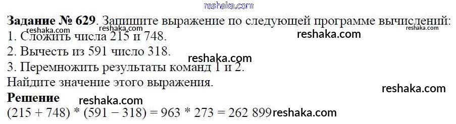 Решака - онлайн ответы Математика Виленкин, Жохов за 5 класс Учебник ФГОС 2013 - 629