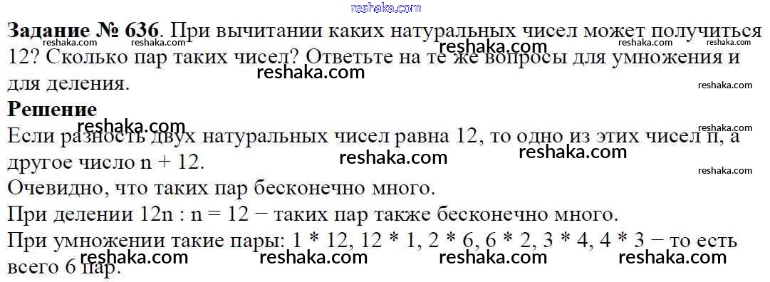 Решака - онлайн ответы Математика Виленкин, Жохов за 5 класс Учебник ФГОС 2013 - 636