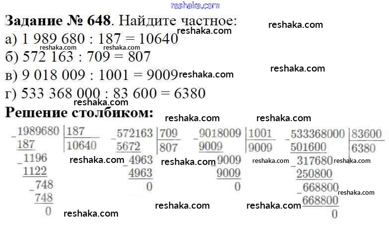 Решака - онлайн ответы Математика Виленкин, Жохов за 5 класс Учебник ФГОС 2013 - 648