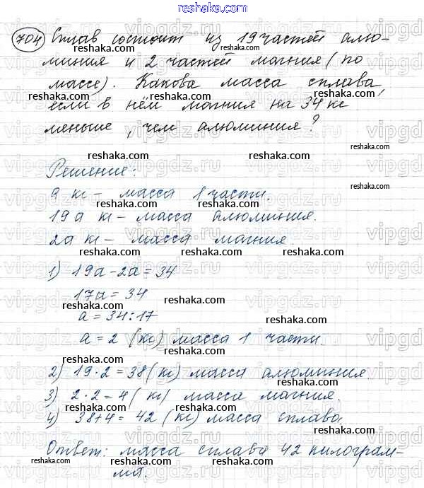 Решака - онлайн ответы Математика Виленкин, Жохов за 5 класс Учебник ФГОС 2013 - 704