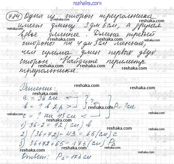 Решака - онлайн ответы Математика Виленкин, Жохов за 5 класс Учебник ФГОС 2013 - 784