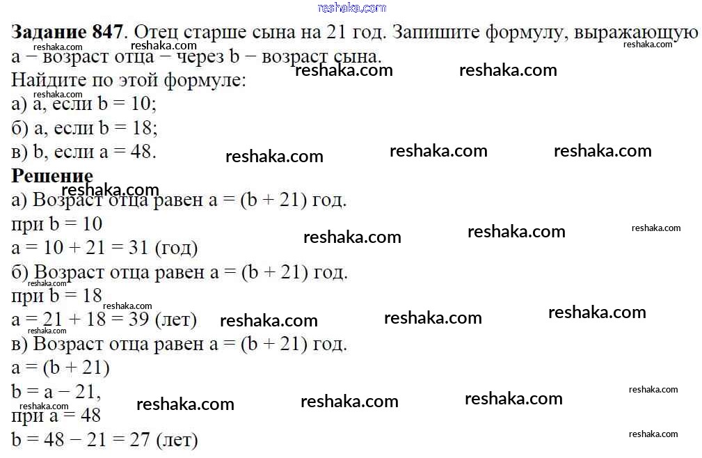 Решака - онлайн ответы Математика Виленкин, Жохов за 5 класс Учебник ФГОС 2013 - 847