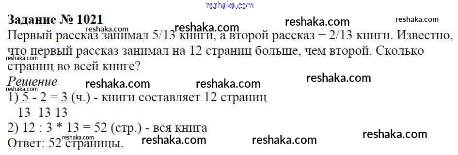 Решака - онлайн ответы Математика Виленкин, Жохов за 5 класс Учебник ФГОС 2013 - 1021
