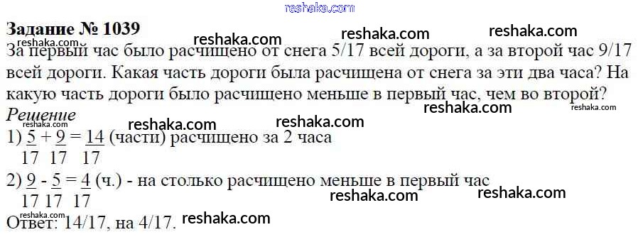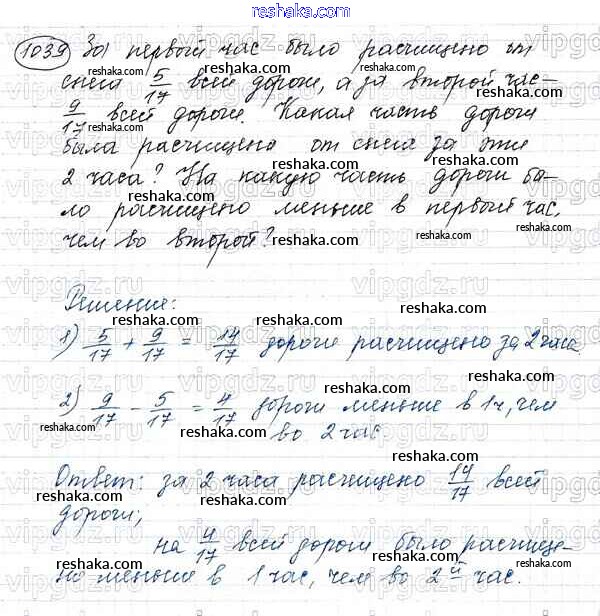 Решака - онлайн ответы Математика Виленкин, Жохов за 5 класс Учебник ФГОС 2013 - 1039