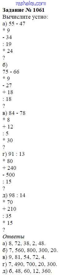 Решака - онлайн ответы Математика Виленкин, Жохов за 5 класс Учебник ФГОС 2013 - 1061