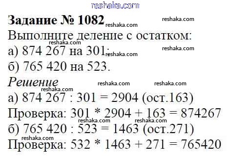 Решака - онлайн ответы Математика Виленкин, Жохов за 5 класс Учебник ФГОС 2013 - 1082