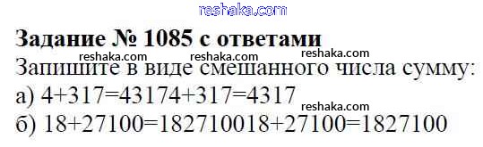 Решака - онлайн ответы Математика Виленкин, Жохов за 5 класс Учебник ФГОС 2013 - 1085