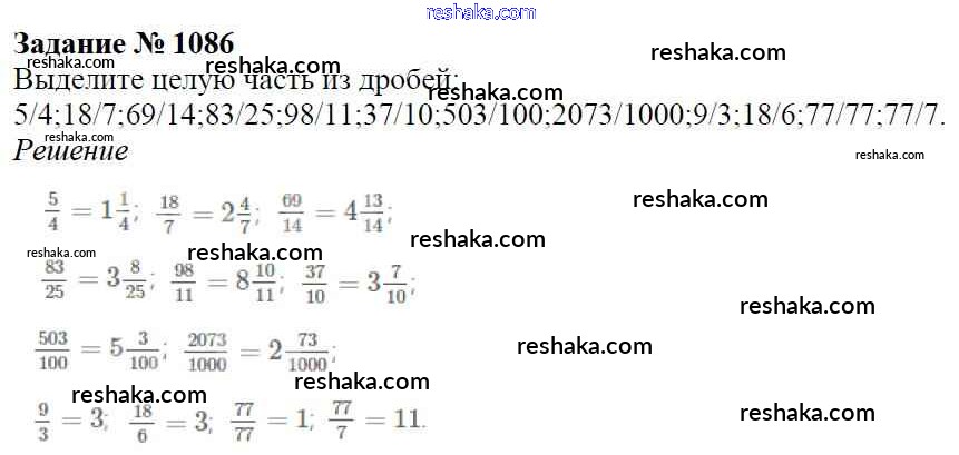 Решака - онлайн ответы Математика Виленкин, Жохов за 5 класс Учебник ФГОС 2013 - 1086