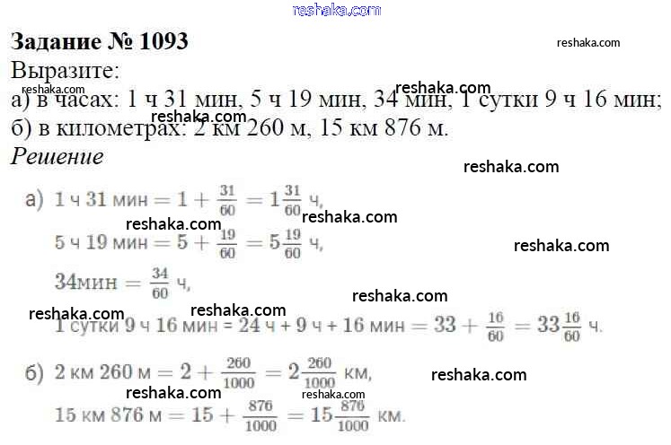 Решака - онлайн ответы Математика Виленкин, Жохов за 5 класс Учебник ФГОС 2013 - 1093
