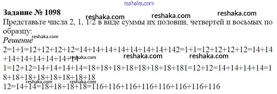 Решака - онлайн ответы Математика Виленкин, Жохов за 5 класс Учебник ФГОС 2013 - 1098