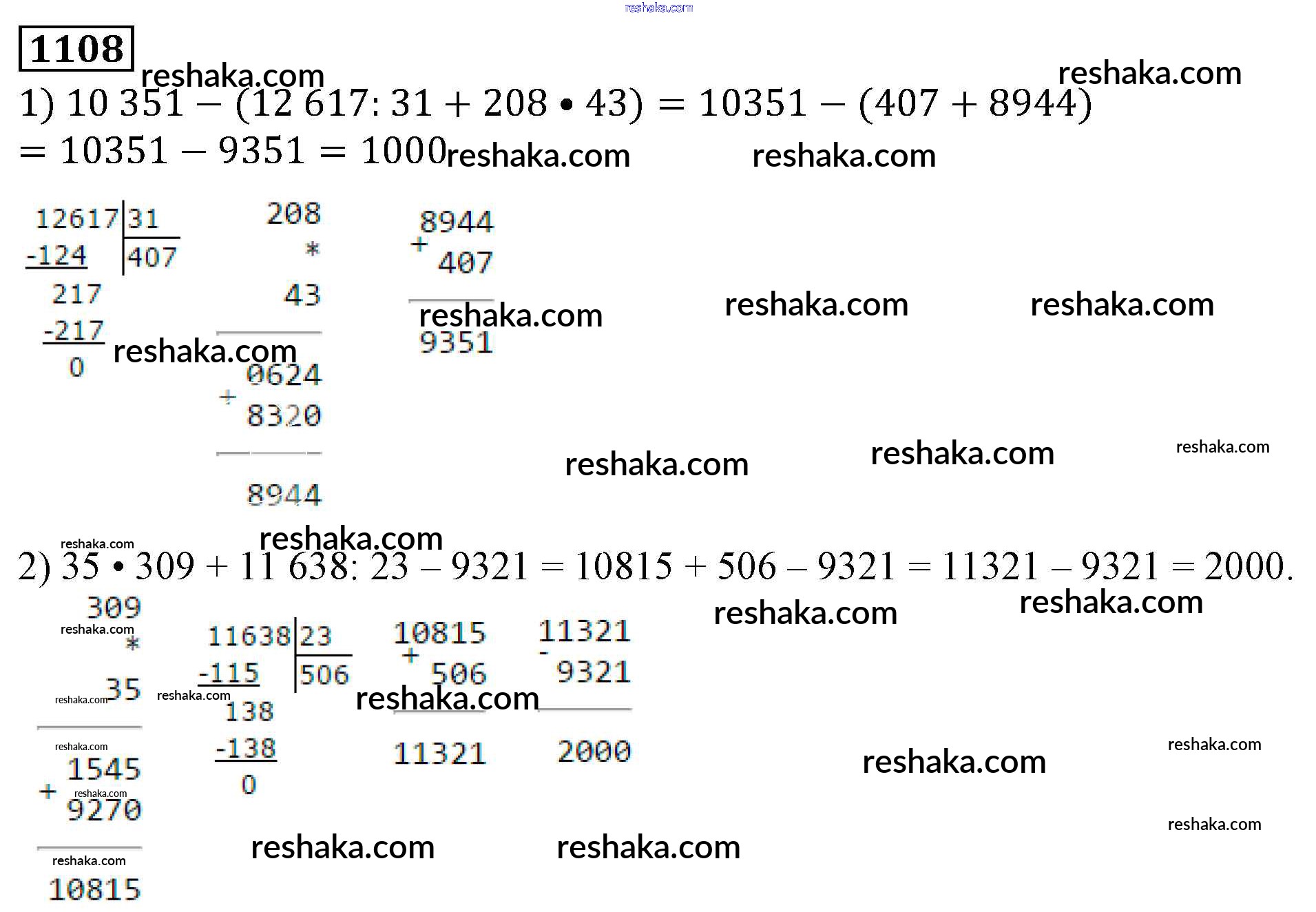 Решака - онлайн ответы Математика Виленкин, Жохов за 5 класс Учебник ФГОС 2013 - 1108