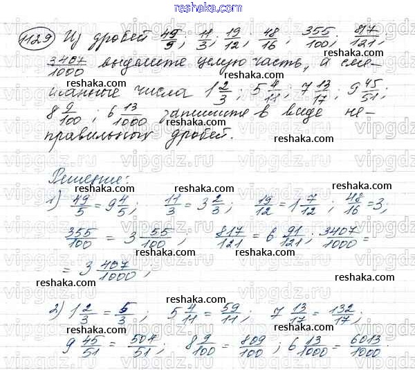 Решака - онлайн ответы Математика Виленкин, Жохов за 5 класс Учебник ФГОС 2013 - 1129