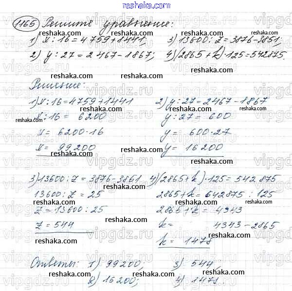 Решака - онлайн ответы Математика Виленкин, Жохов за 5 класс Учебник ФГОС 2013 - 1165