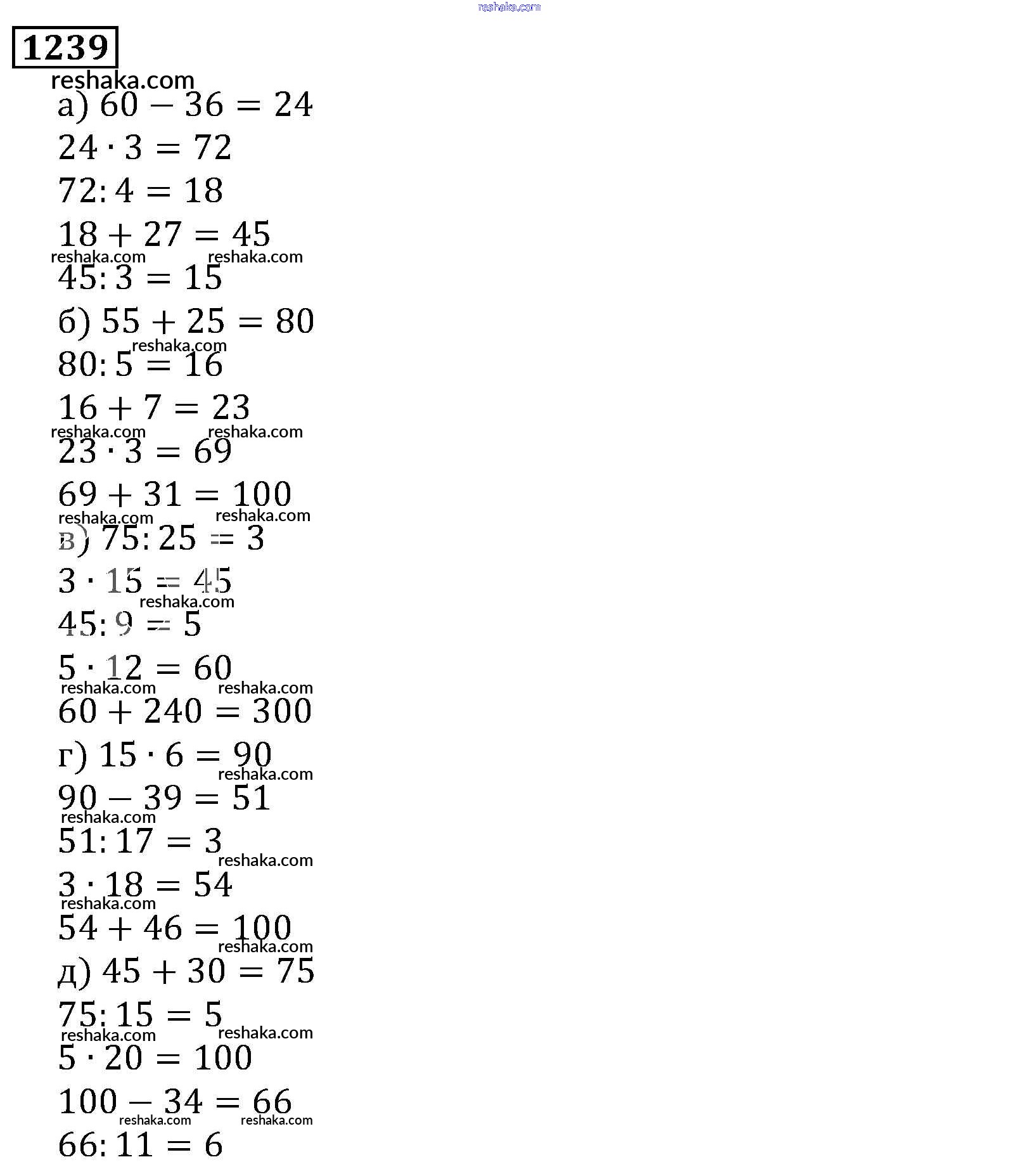 Решака - онлайн ответы Математика Виленкин, Жохов за 5 класс Учебник ФГОС 2013 - 1239