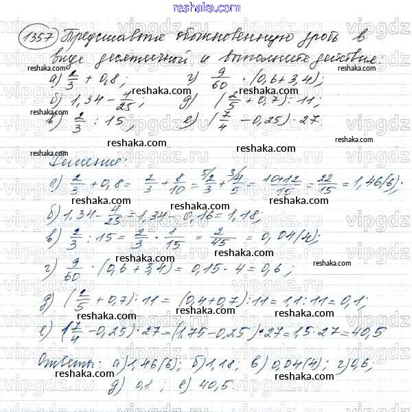 Решака - онлайн ответы Математика Виленкин, Жохов за 5 класс Учебник ФГОС 2013 - 1357