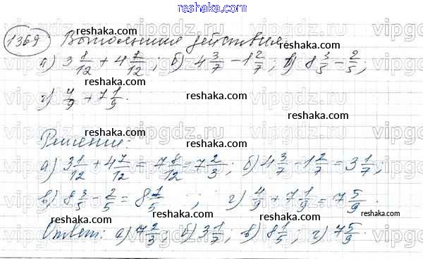 Представляем вам сборники по Математике, с готовыми ответами к Учебнику Виленкин школьной программы для учеников пятый класса. Это не просто гдз с ответом, а с подсказками, как верно решить Глава 2. Дробные числа (упражнения с 850 по 1849) 1369. Проверяй домашку с умом и получай высший балл!