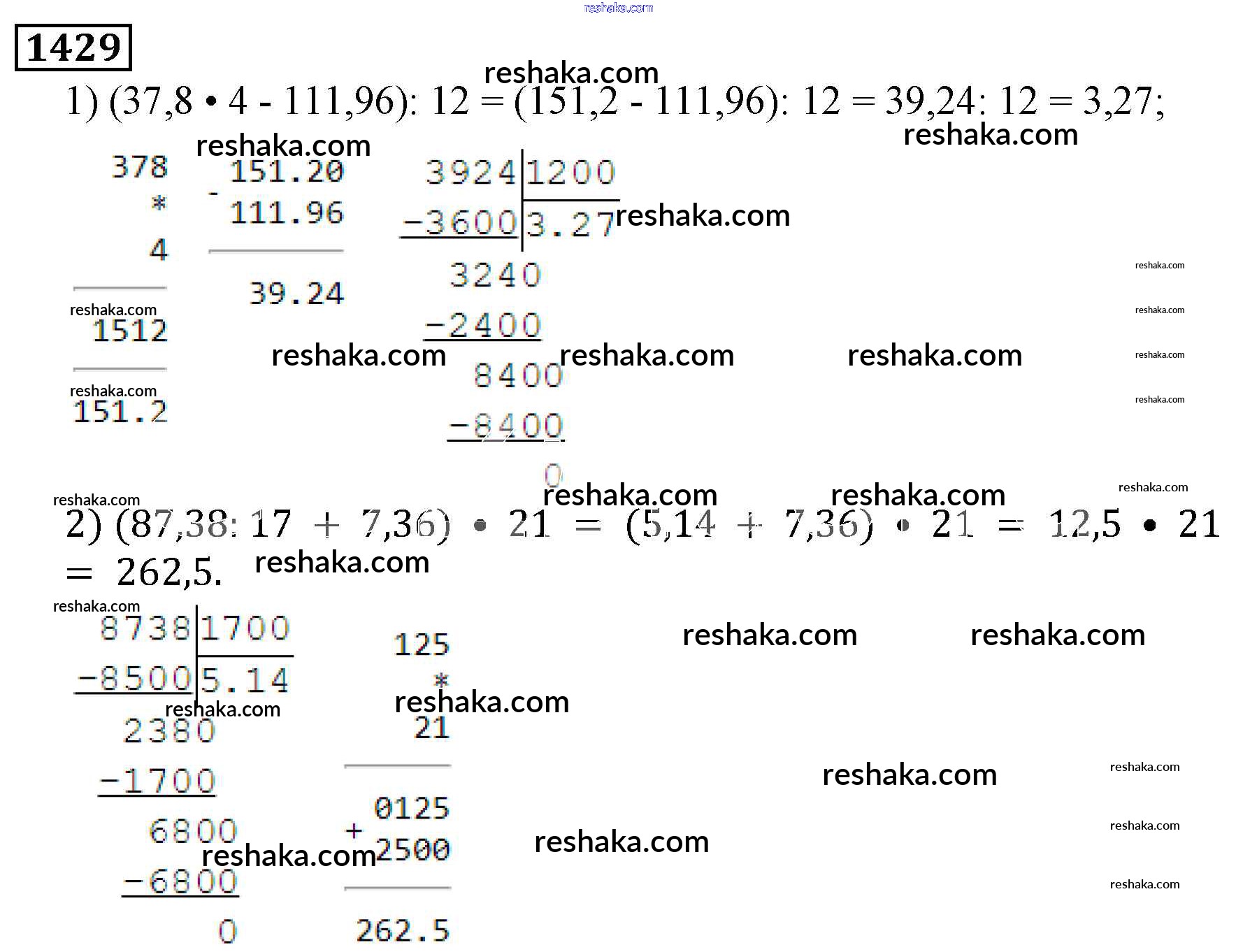 Решака - онлайн ответы Математика Виленкин, Жохов за 5 класс Учебник ФГОС 2013 - 1429