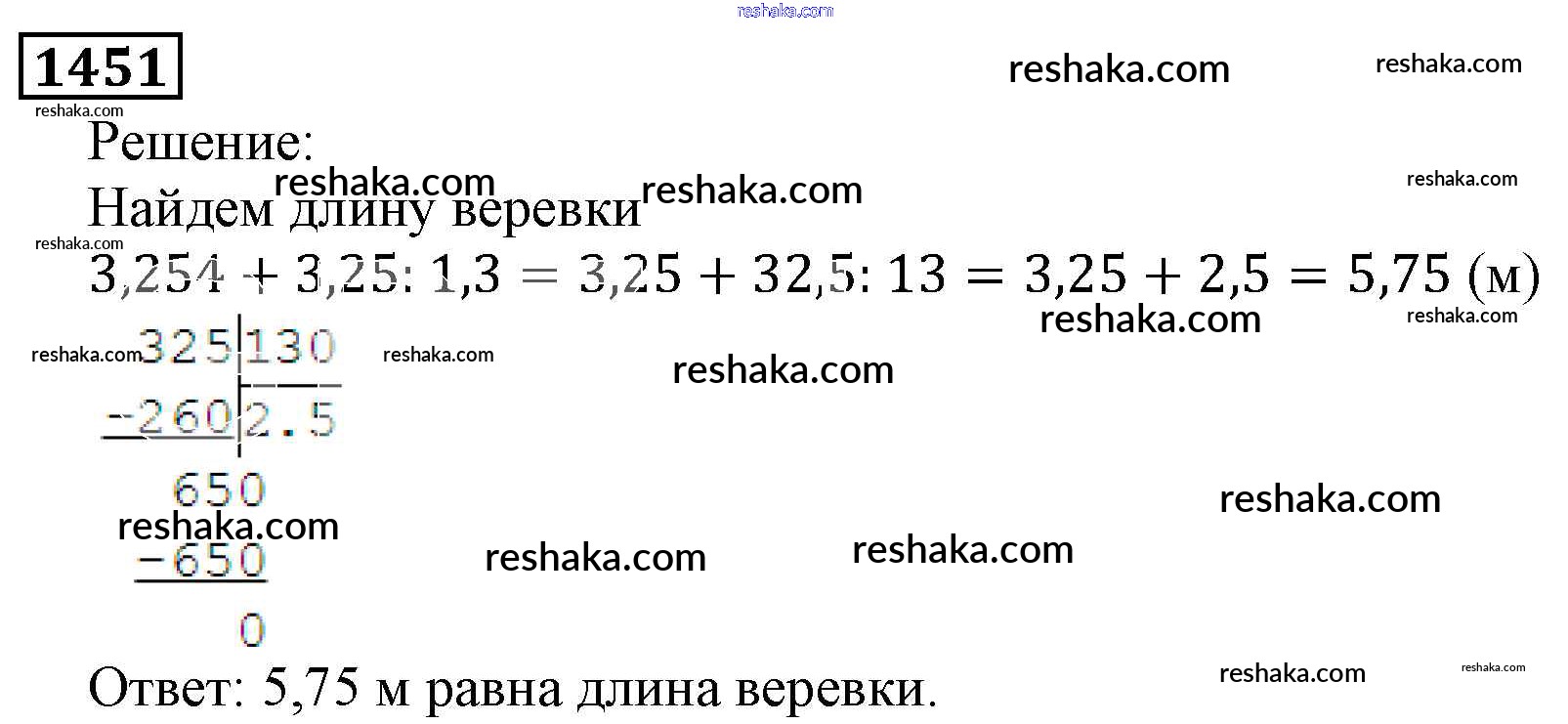 Решака - онлайн ответы Математика Виленкин, Жохов за 5 класс Учебник ФГОС 2013 - 1451